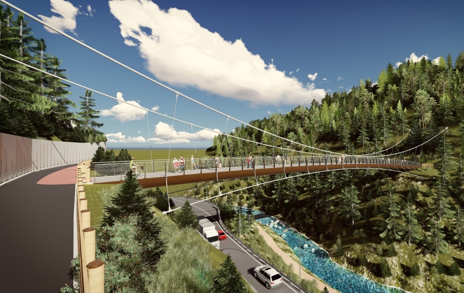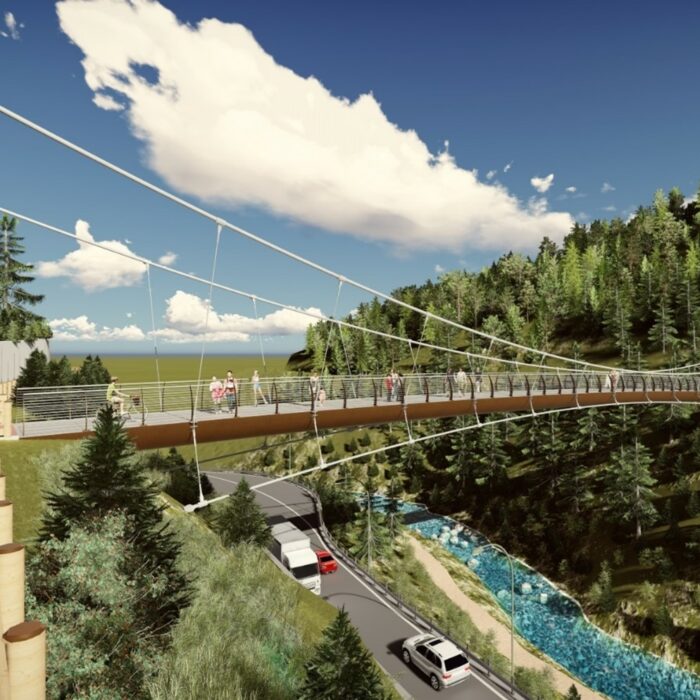 passerella ciclopedonale sospesa sopra il fiume Rio Gardena